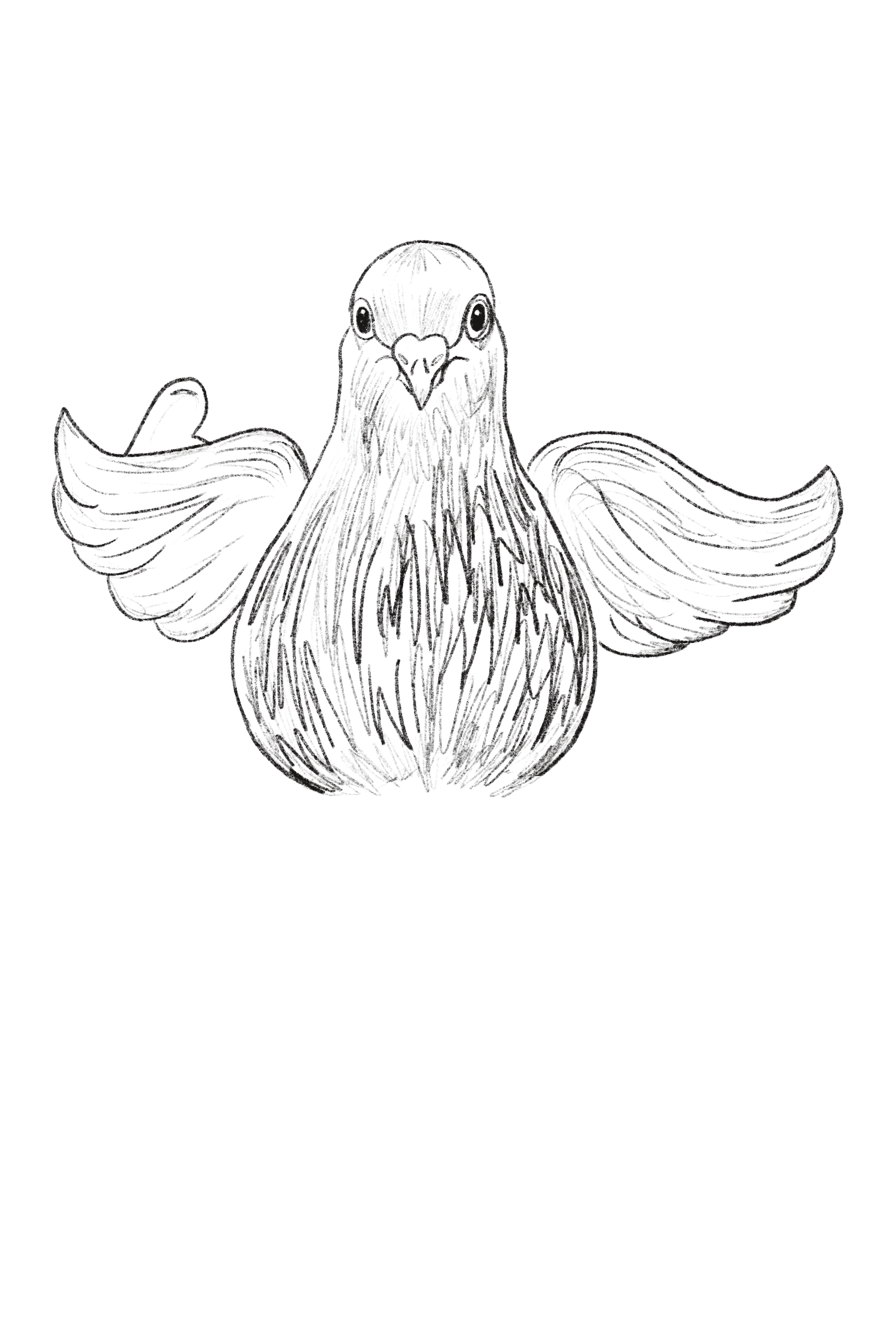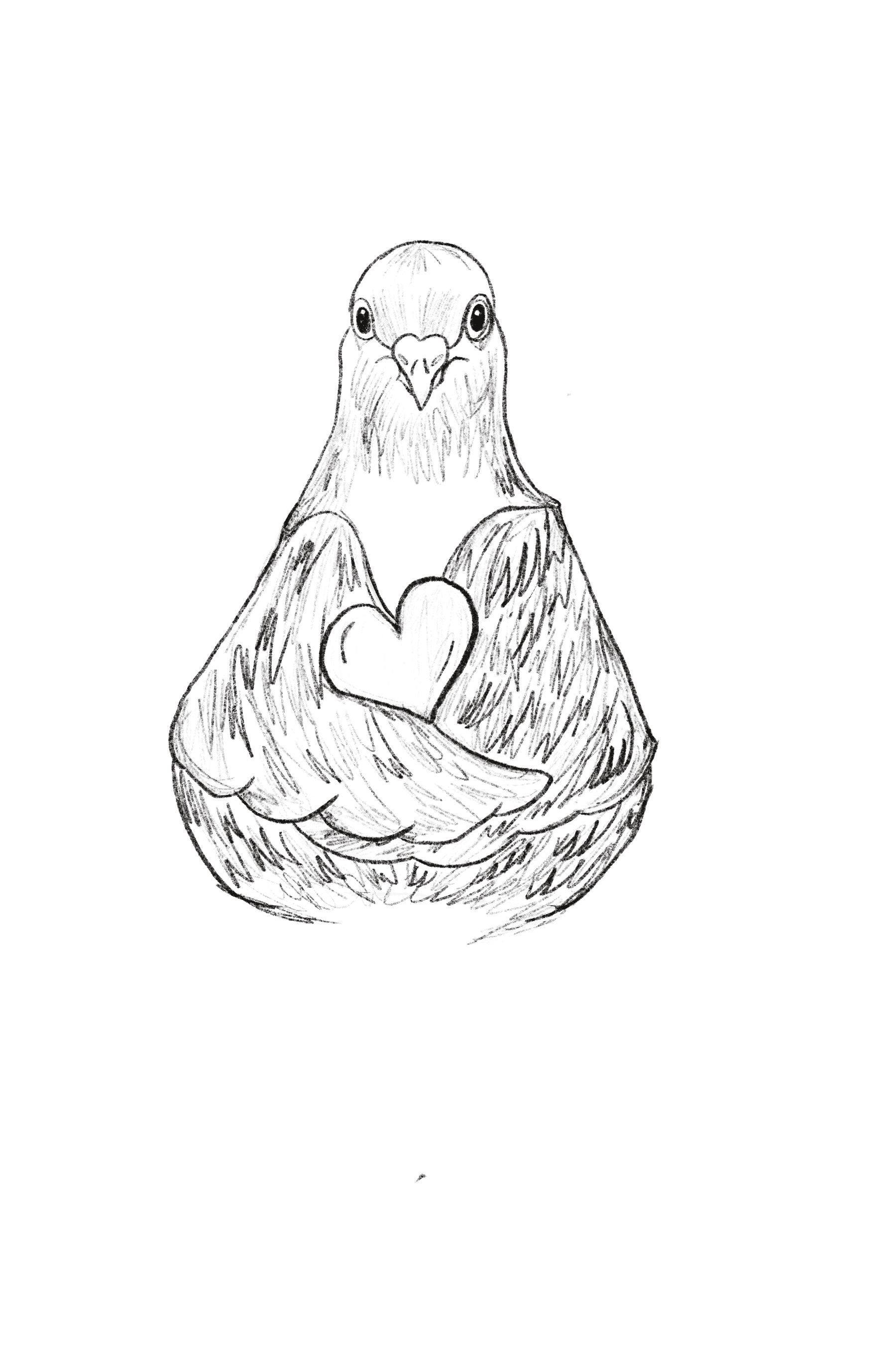 The colour palette remains mostly minimal, with the pigeon rendered in white to symbolize purity and sincerity. Subtle accents appear in the heart and beak, adding warmth without overwhelming the form.