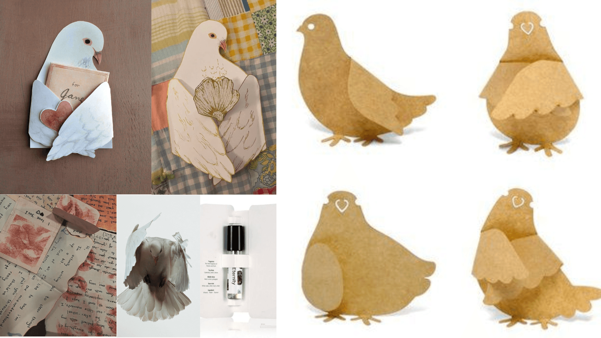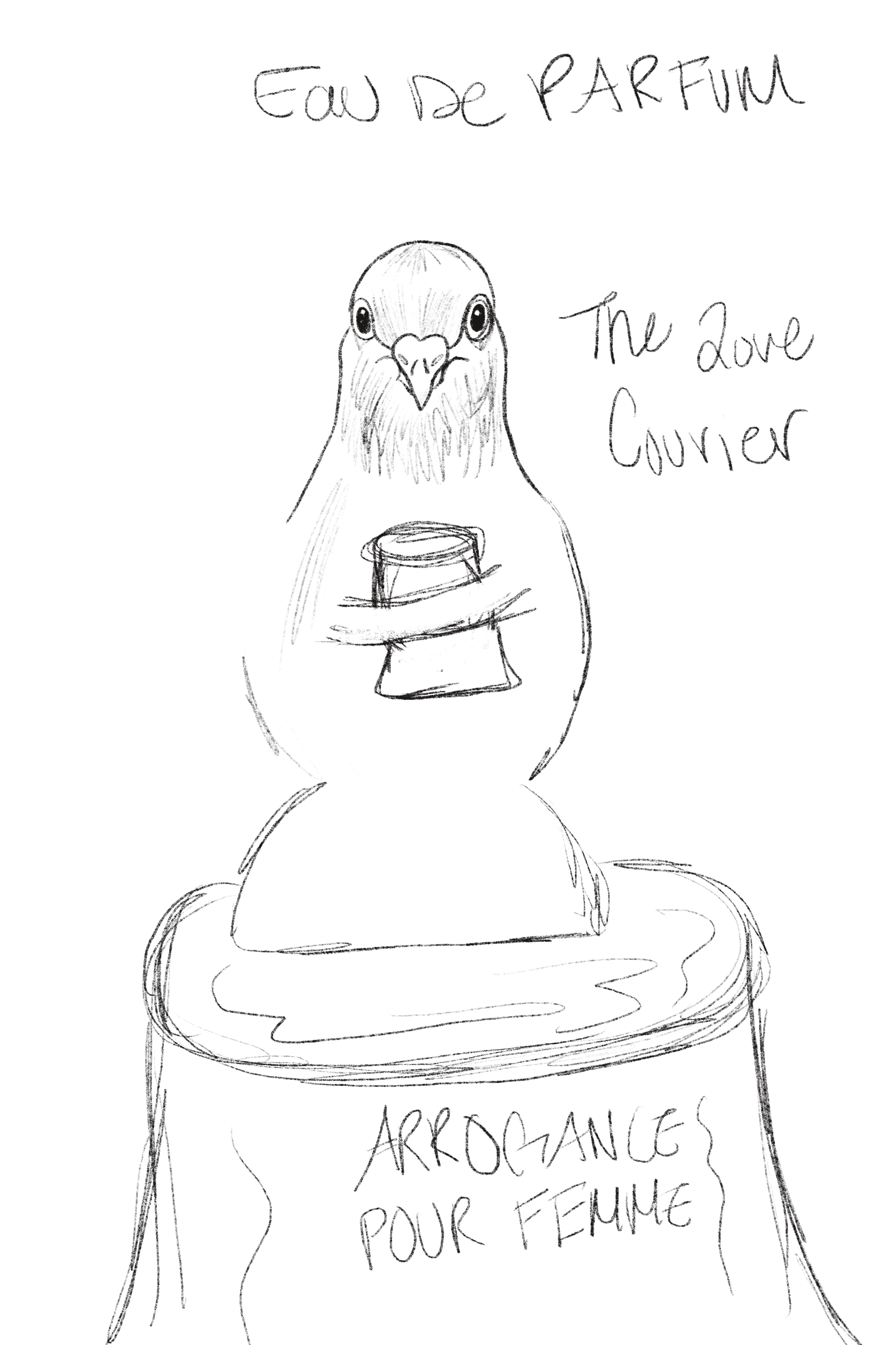 One design challenge was determining how to portray the pigeon in a way that felt romantic and symbolic rather than literal or distracting. Because pigeons are not typically associated with elegance, it was important to find a visual approach that would still feel refined and meaningful.