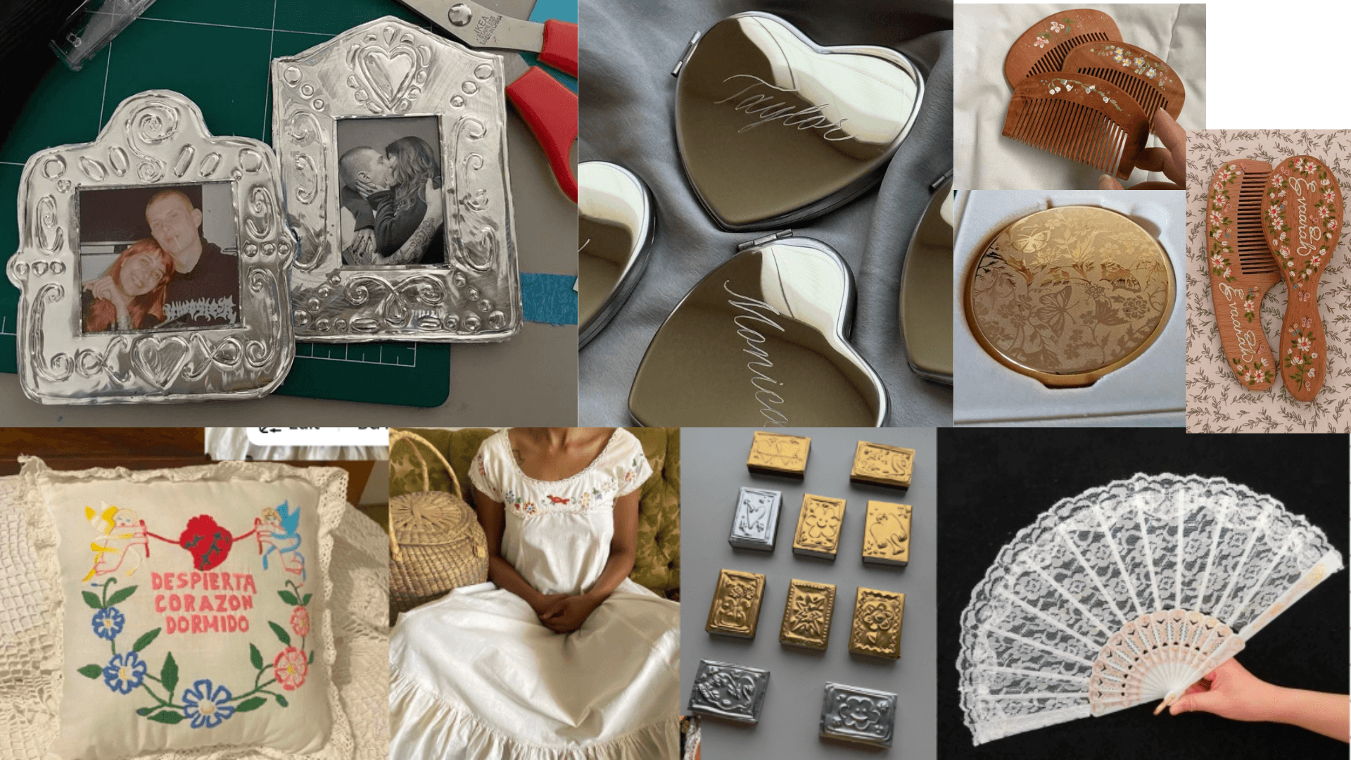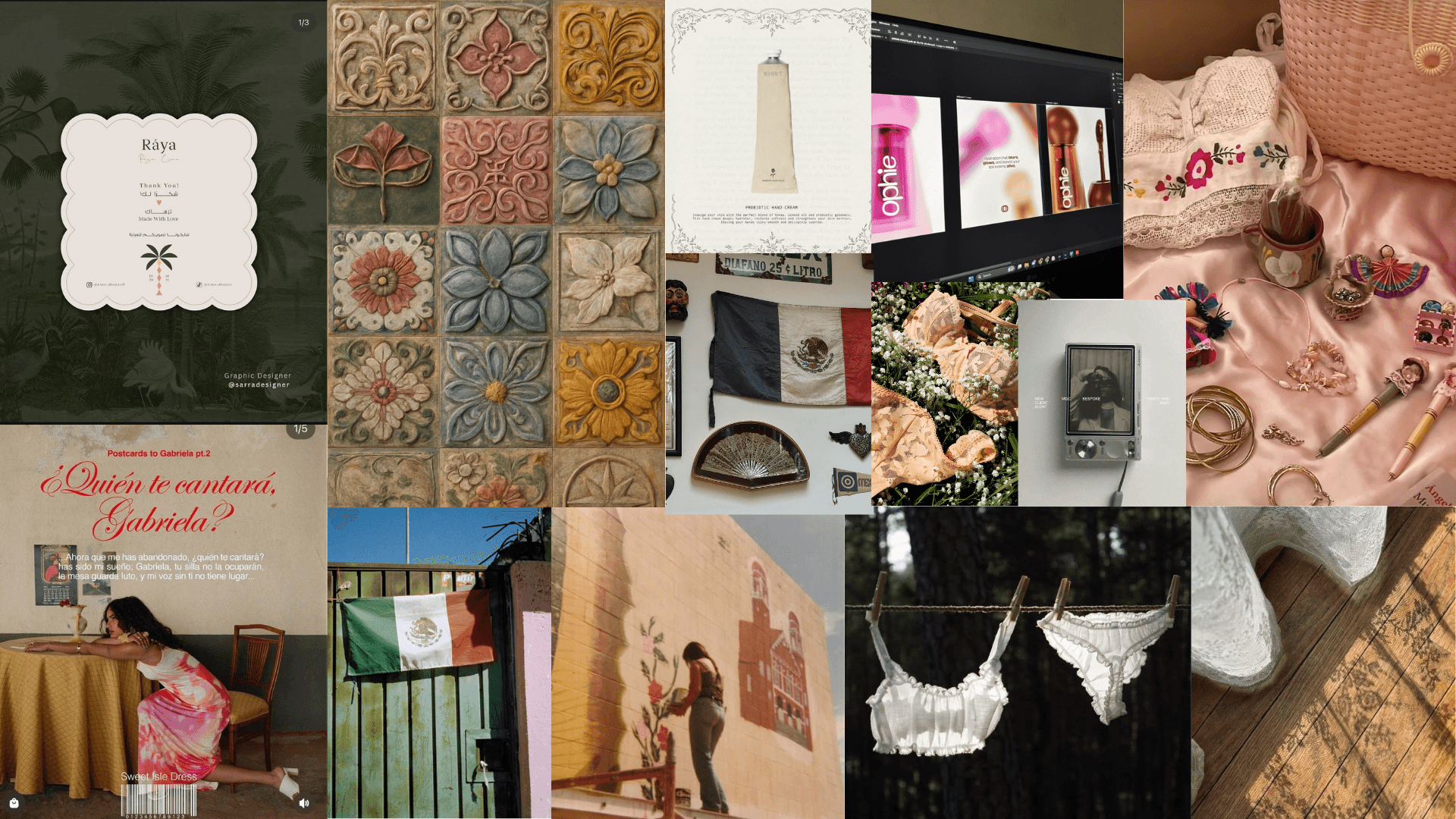Instead of relying on overt elements, I shifted my approach to focus on subtle, meaningful details that reflect Mexican culture in a more personal and authentic way, drawing from my research and personal experiences through material choices like lace and textured fabrics, rustic and vintage-inspired typography, small traditional patterns, and symbolic objects such as the comb and mirror tied to generational memory and care. This approach allowed the project to feel cohesive and culturally grounded without overwhelming its softer, nostalgic tone, while also reflecting my identity more honestly by embracing a quieter, more intimate expression of heritage.