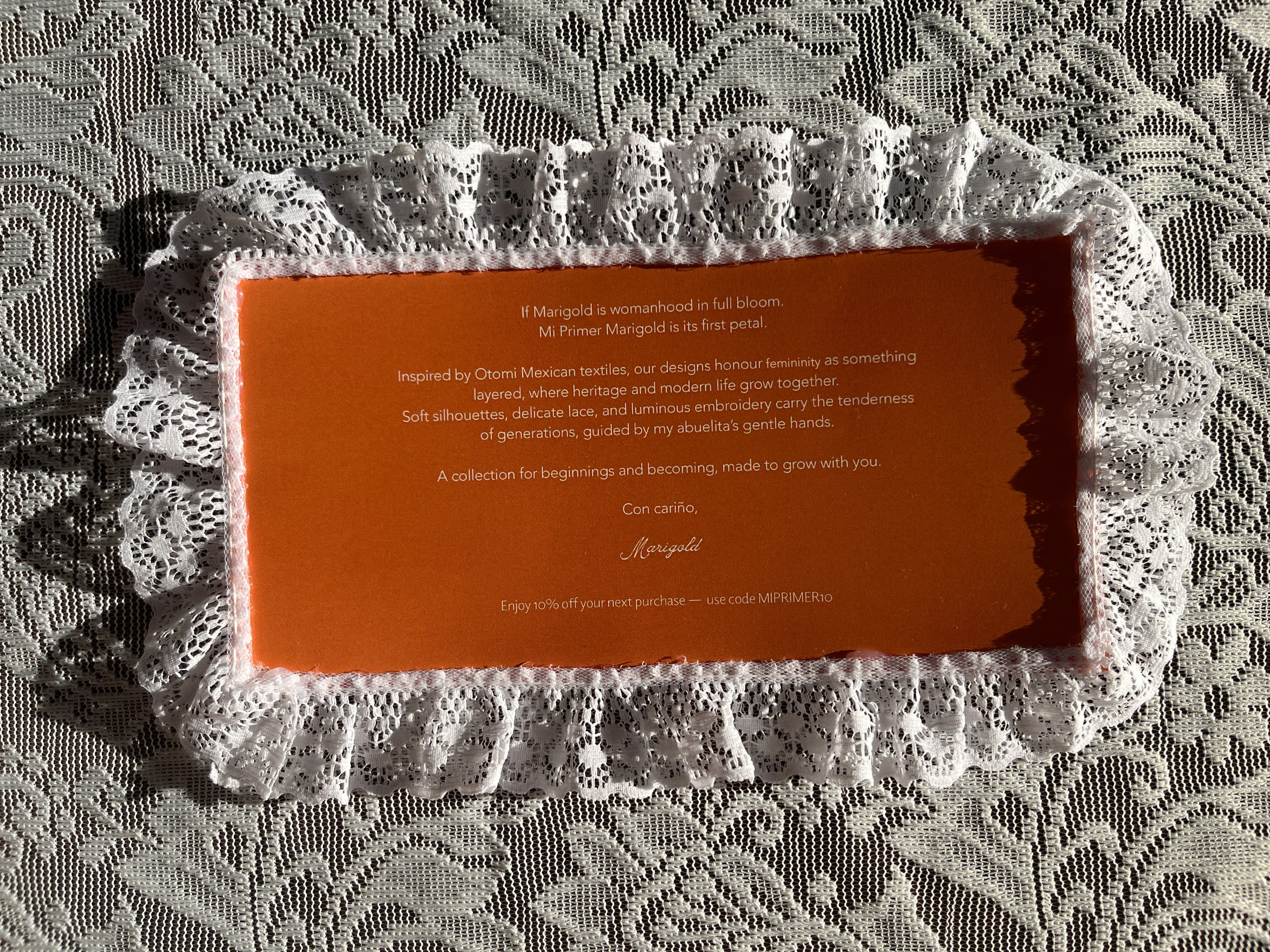 Overall, Mi Primer Marigold collection captures girlhood through nostalgia, care, and cultural identity. Rooted in a vintage, rustic aesthetic, the project focuses on creating a keepsake experience rather than just a product, but something personal, lasting, and meaningful.