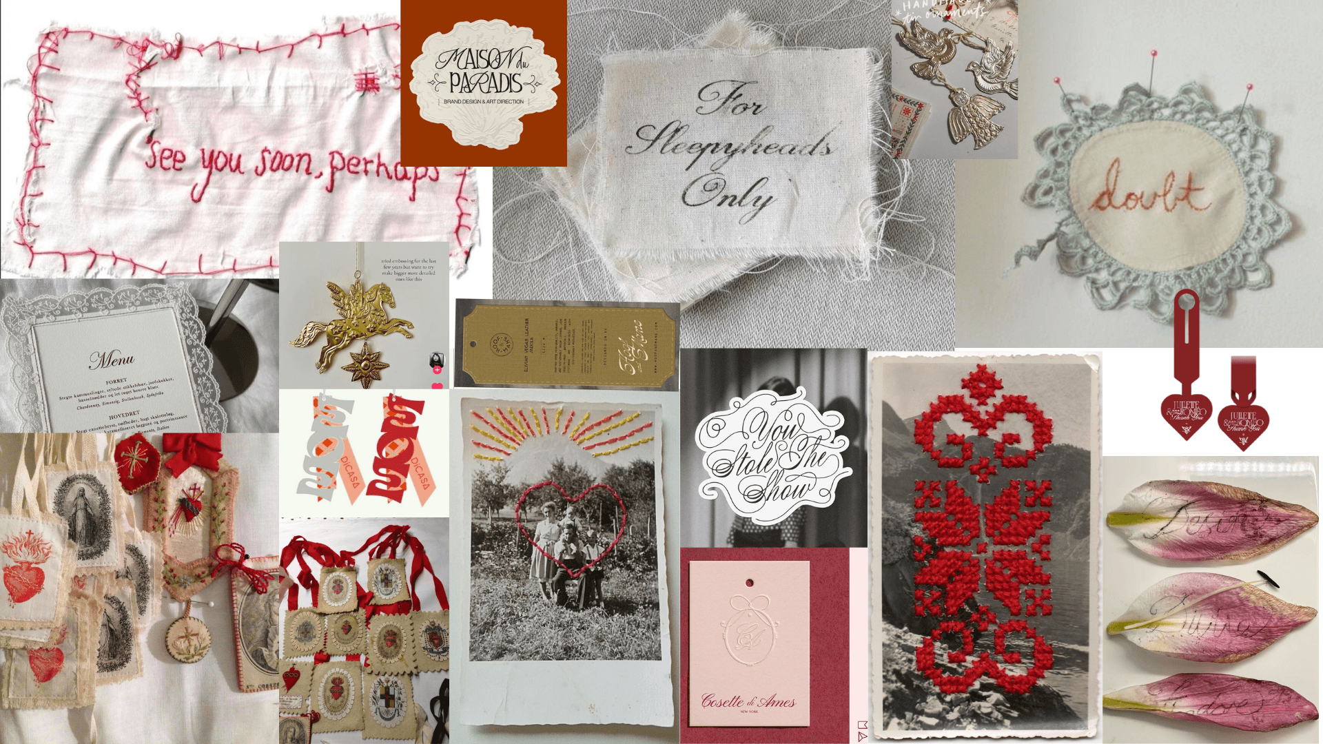 My solution was to keep going back and reworking things until it felt right. Instead of forcing more colour in, I focused on letting the details speak—using embroidery, stitching, and texture to carry that richness. I kept the base more muted and soft, then added small moments of colour in a way that felt intentional. I also looked for references that matched what I had in my head—less of the stereotypical visuals, and more of the quiet, everyday beauty that people who share that experience would recognize. That helped me stay grounded in what I actually wanted the brand to feel like.