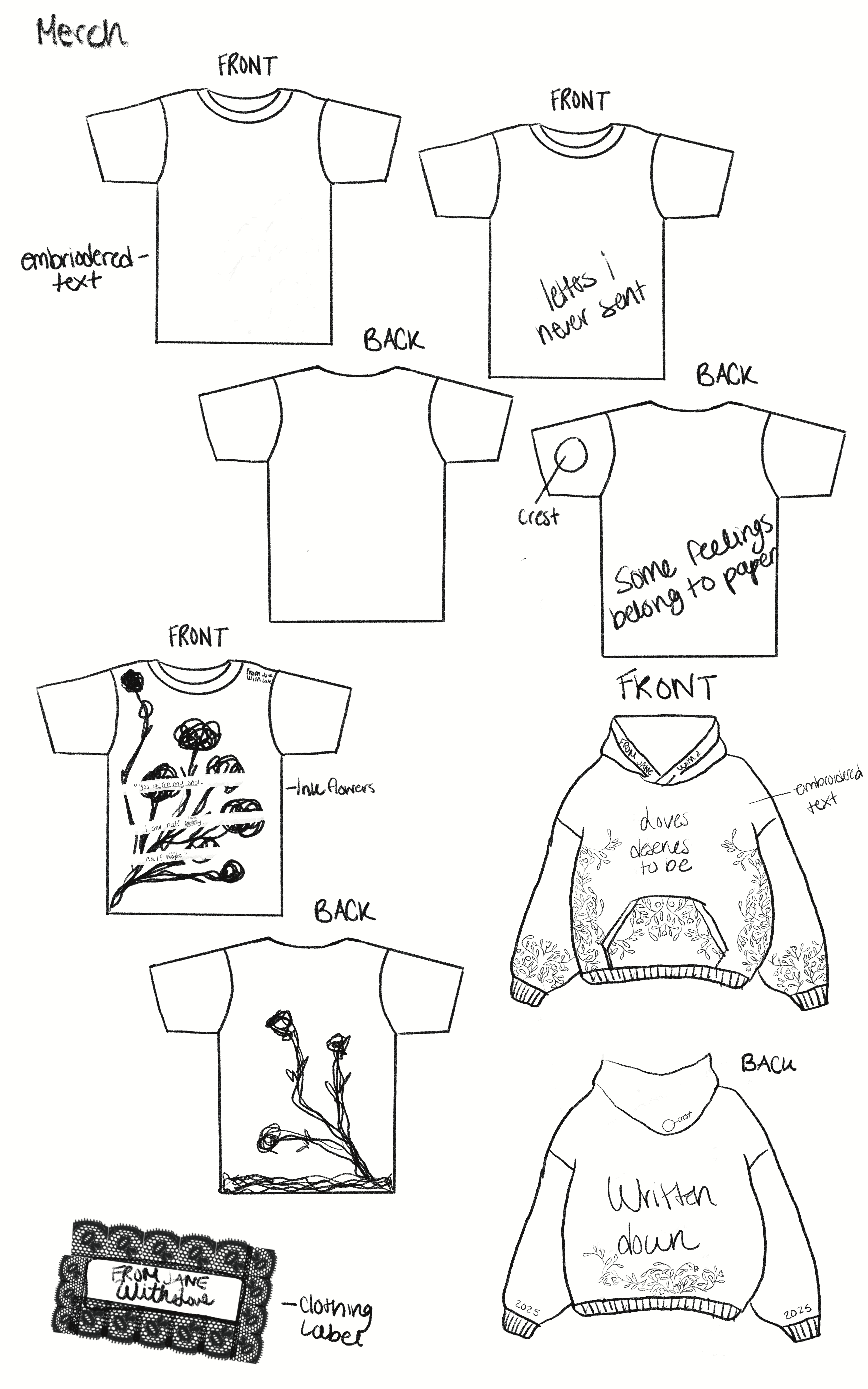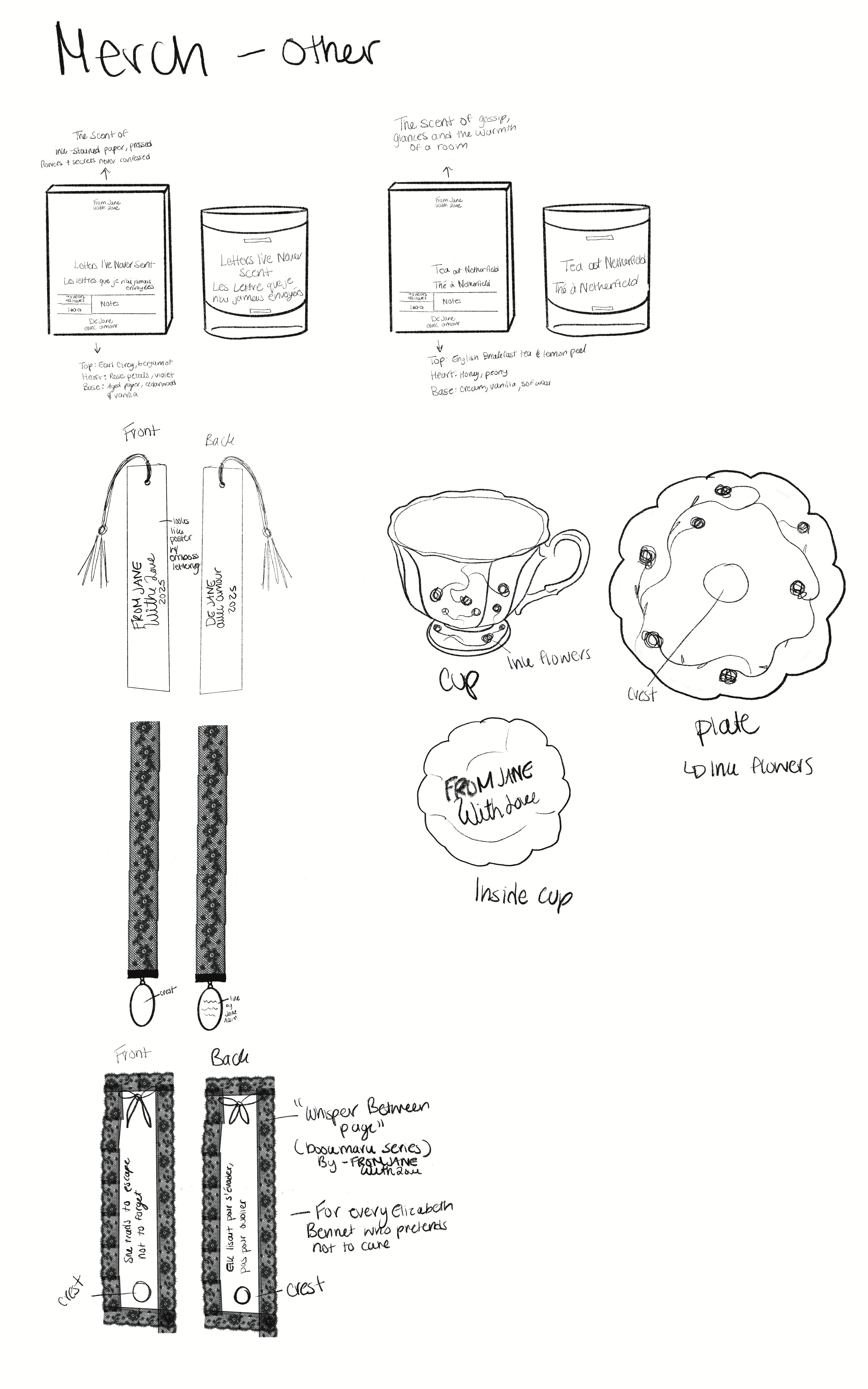 For the festival apparel, I designed pieces that feel like real clothing—wearable, stylish, and suitable year-round—not typical branded festival merch. The designs draw inspiration from Jane Austen’s stories and letters, emphasizing literary and emotional themes.