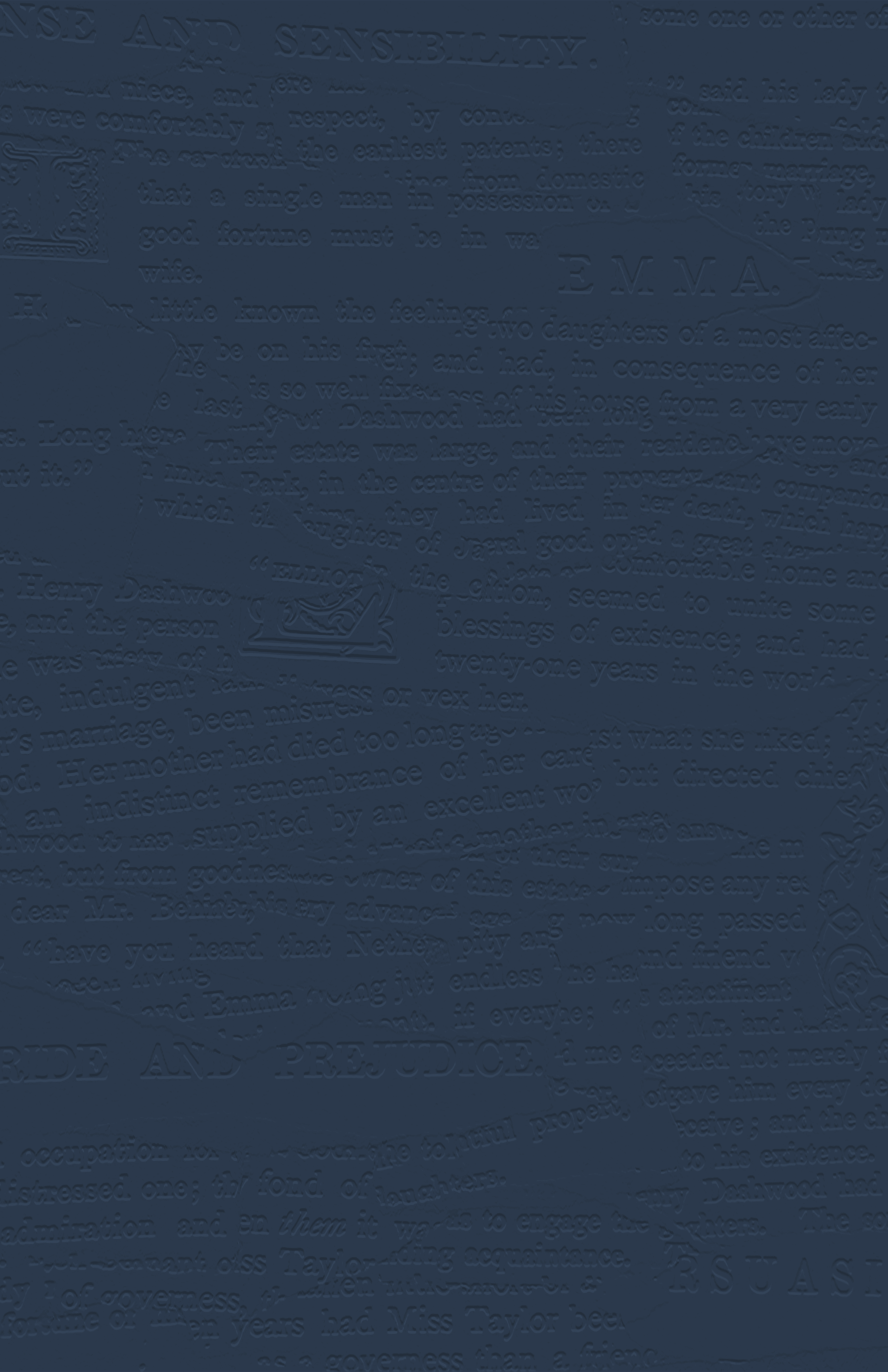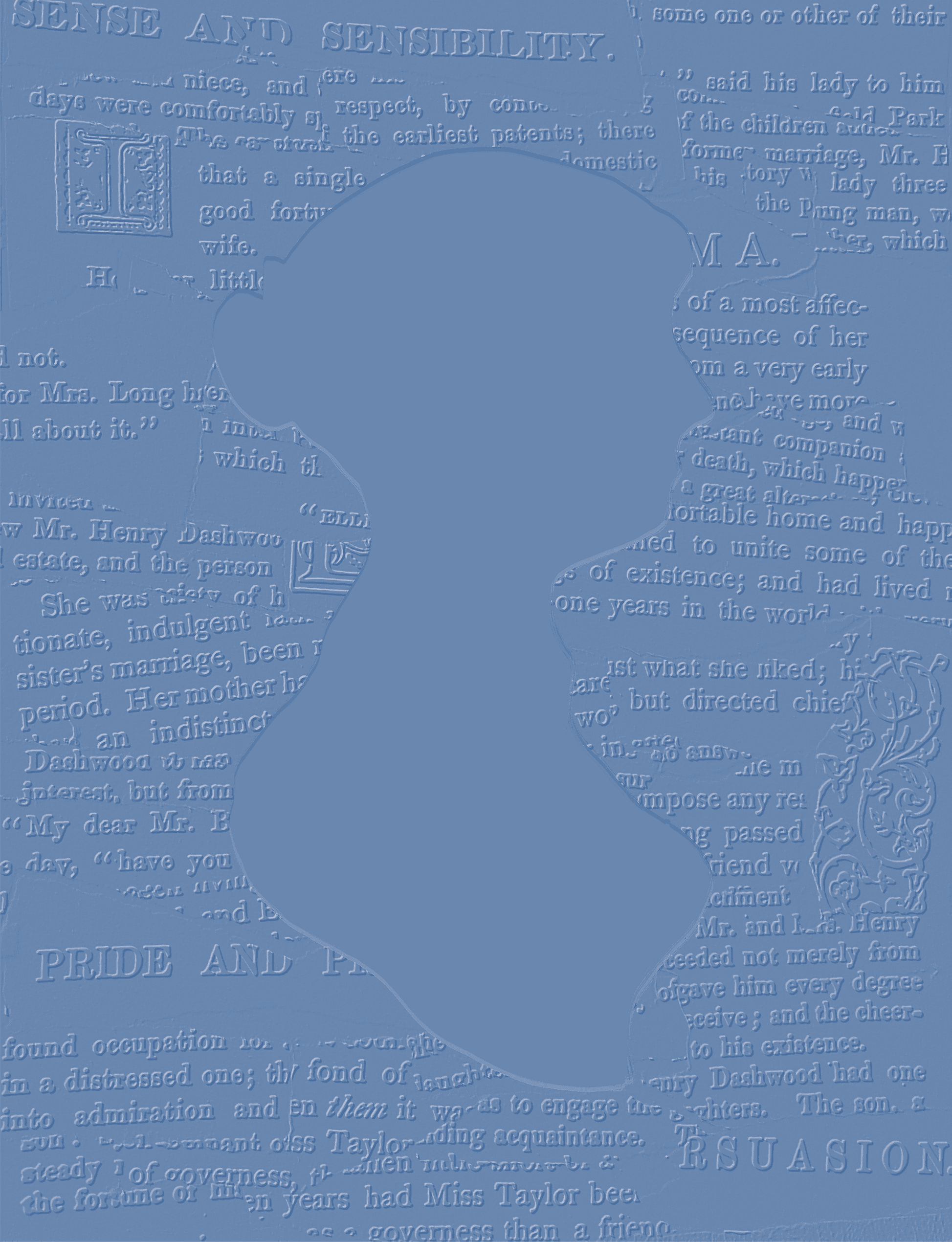 Constructed from scanned pages of Jane Austen’s novels. These pages were physically assembled, digitized, and treated with an embossed effect to create a layered, textured surface.