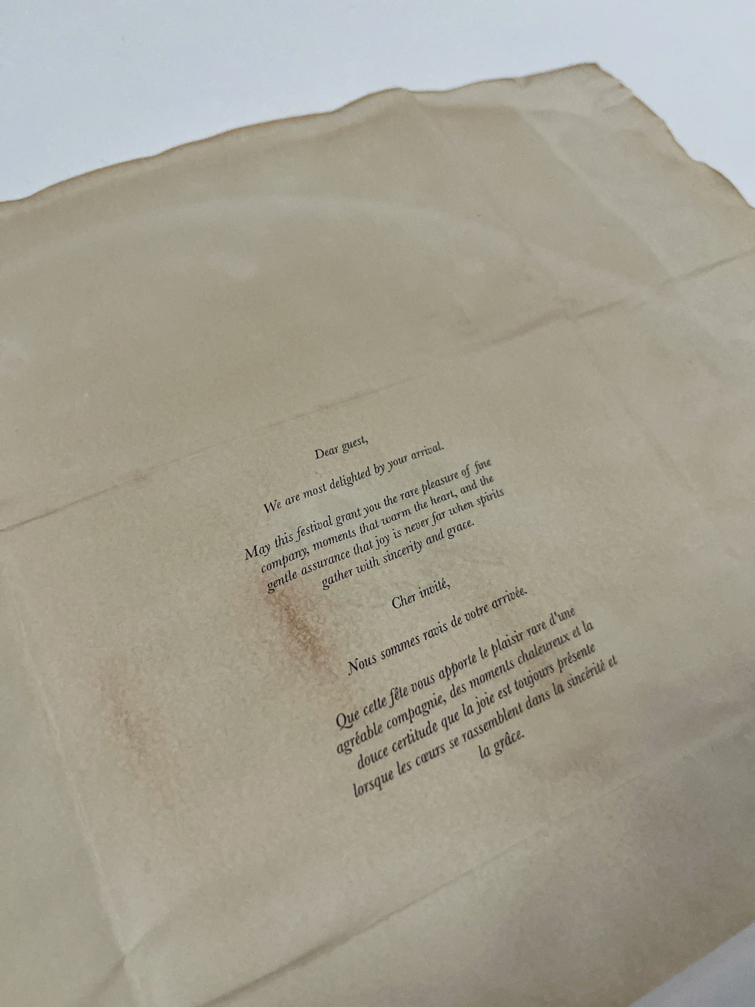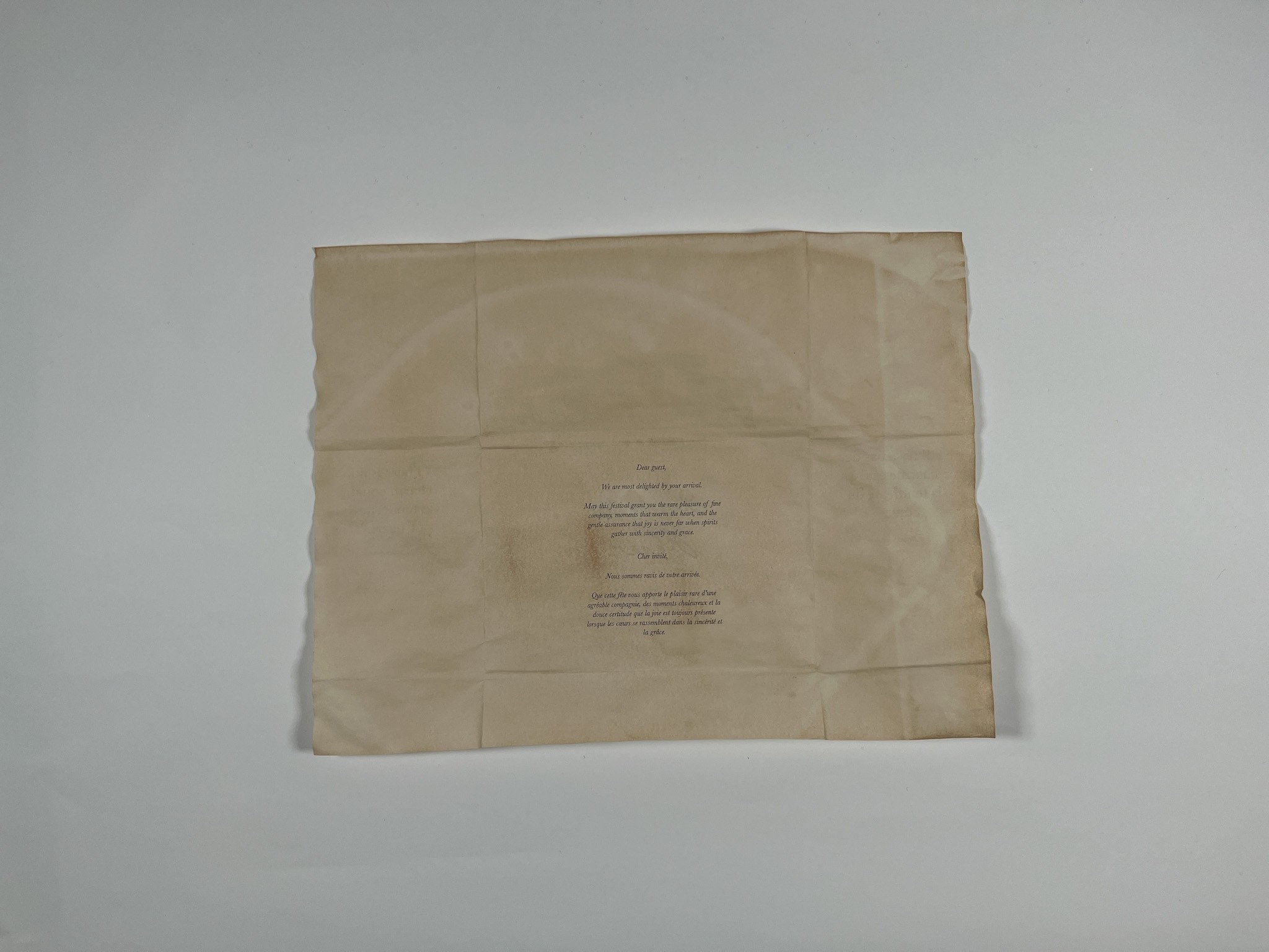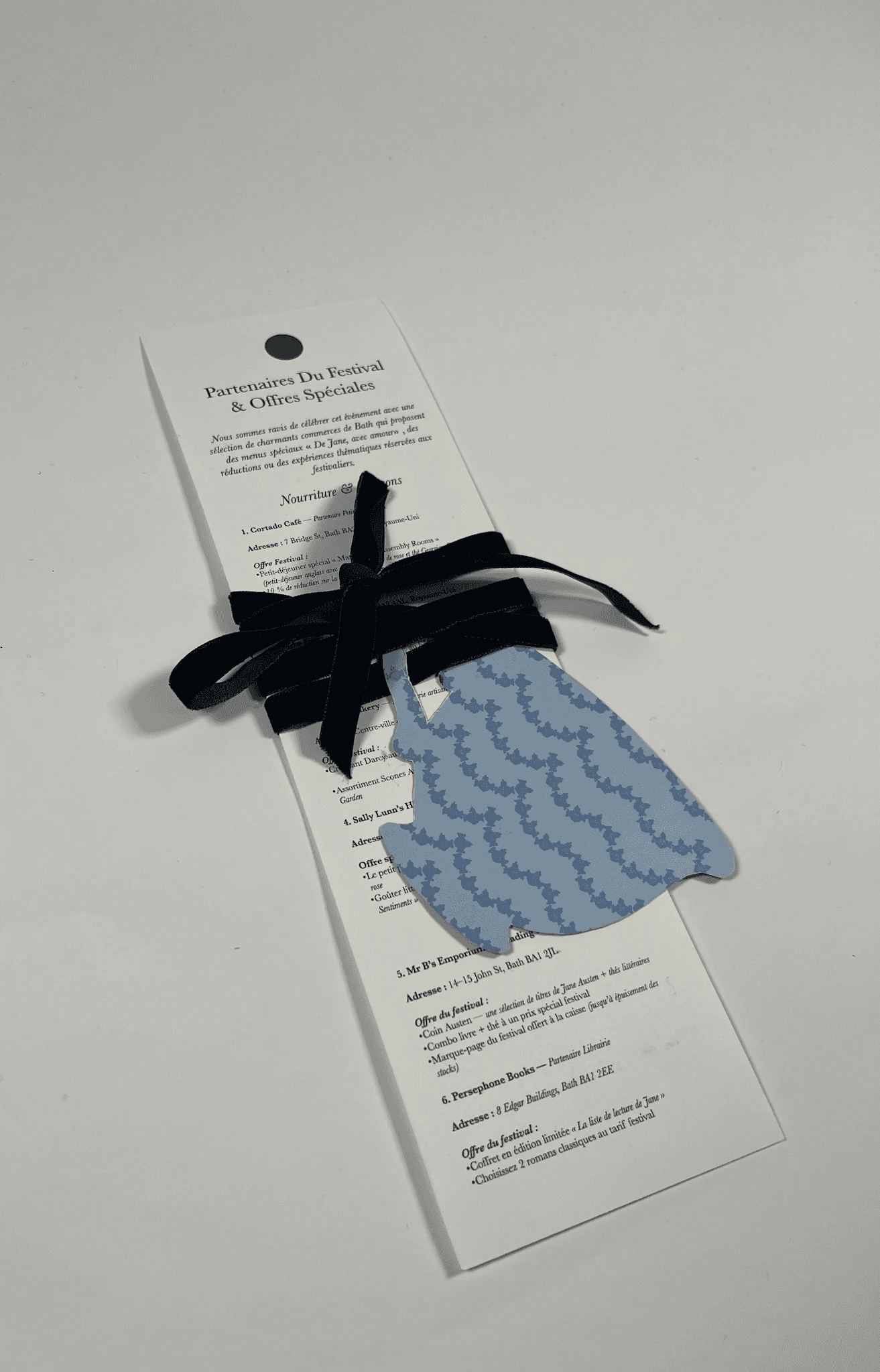 Like any welcome box, this includes a welcome letter, but it is specially designed for guests who purchased advance tickets to build excitement before the festival begins. The letter is styled after Jane Austen’s folded letters, mimicking the way she would fold her correspondence. To enhance the vintage, Regency-era feel, the letter is tea-stained, immersing recipients in a tactile, historical experience.