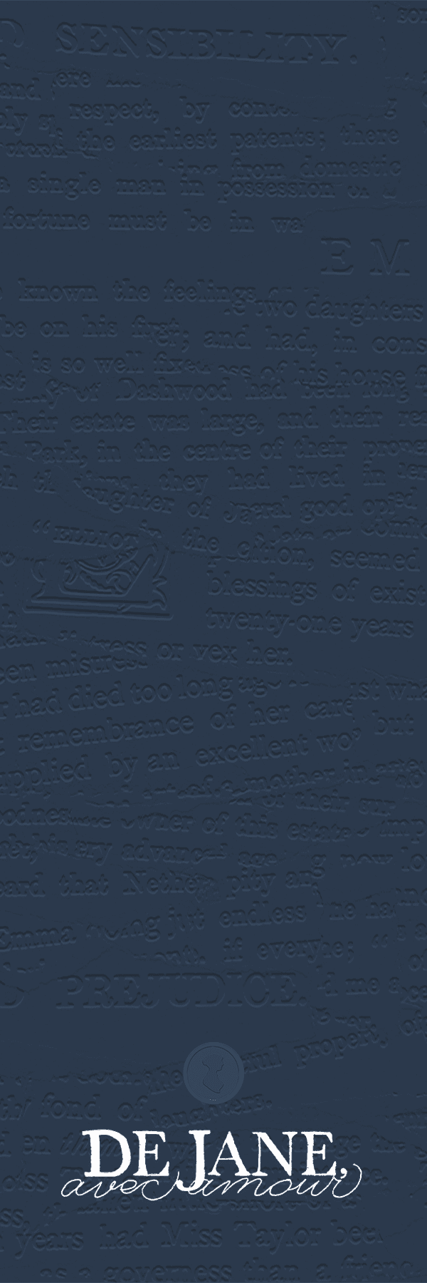I used Baskerville, a serif typeface designed in the 18th century and widely used during Jane Austen’s lifetime. Its refined contrast and balanced proportions embody the same sense of grace and intelligence found in Austen’s writing.