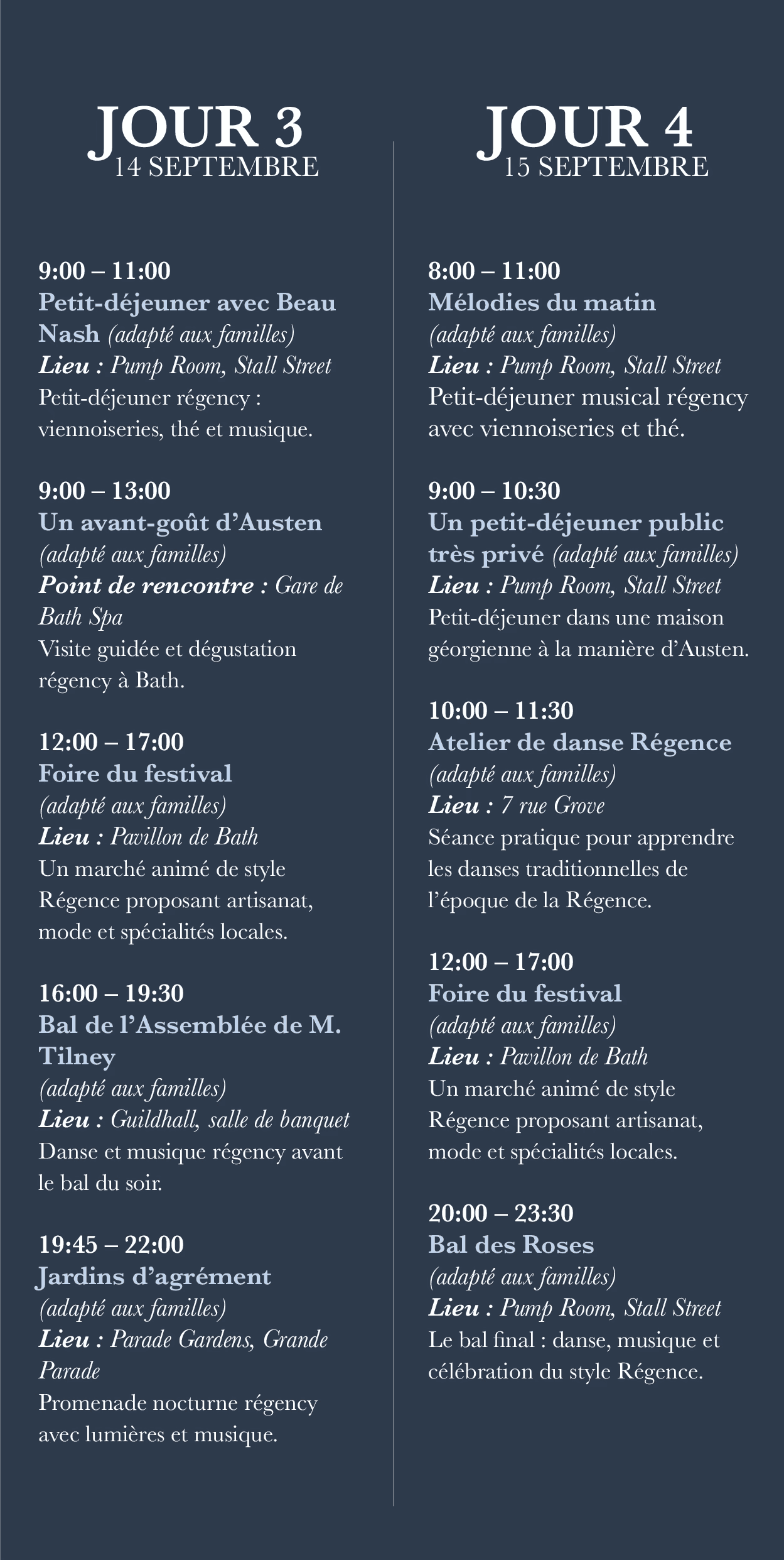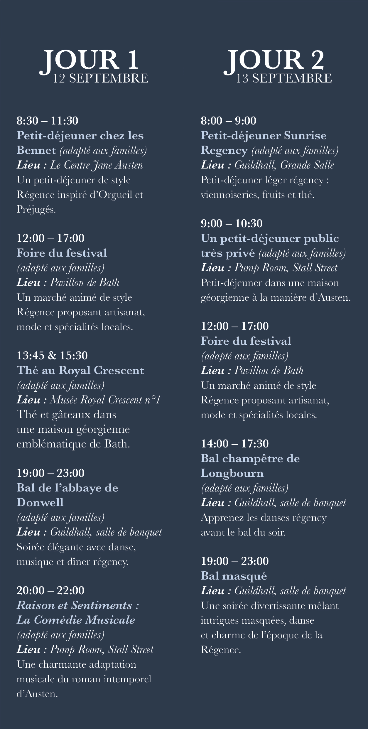 Festival Schedule - English & French