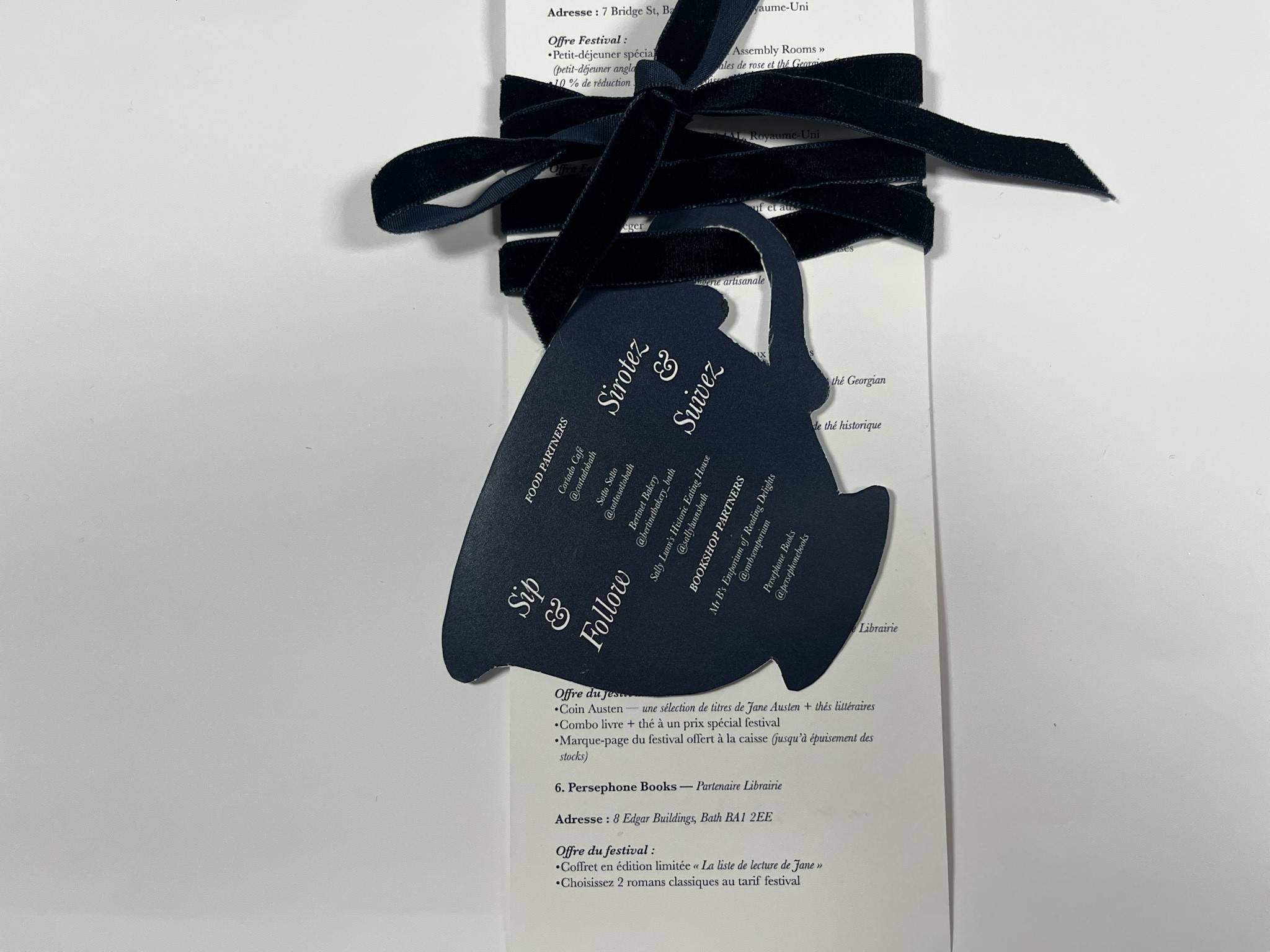 Each card is tied with a teacup-shaped sheet featuring the social media handles of the shops, allowing attendees to explore their offerings, see what they serve, and get a sense of the space before visiting.