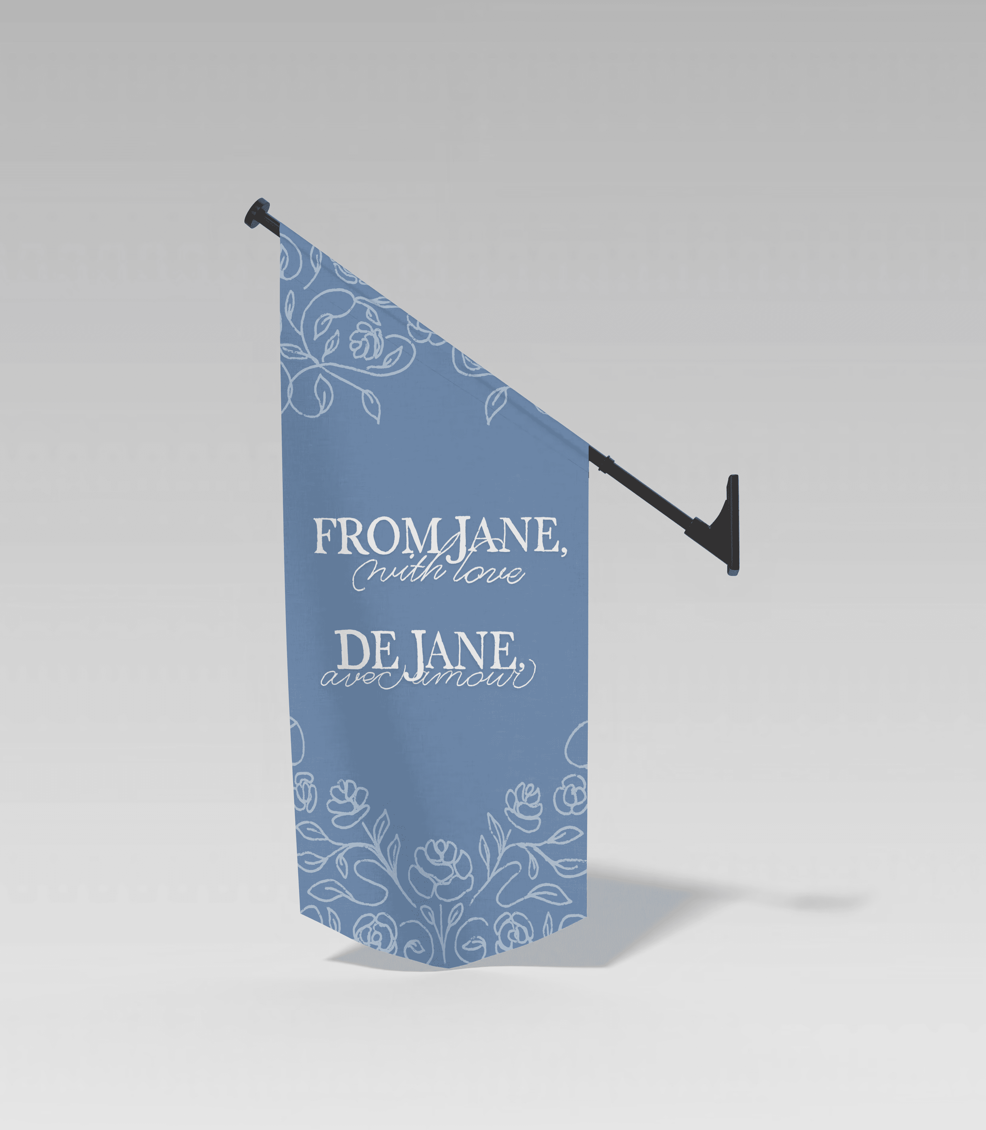The festival welcome box is designed to create excitement from the moment it is received. The top of the box features the festival emblem paired with a floral abstract pattern, setting a tone of elegance and anticipation. Inside, attendees are greeted with a decorative pattern and the festival title presented in both English and French—From Jane, With Love and De Jane, Avec Amour—highlighting the bilingual nature of the event and reinforcing its inclusive, celebratory atmosphere.