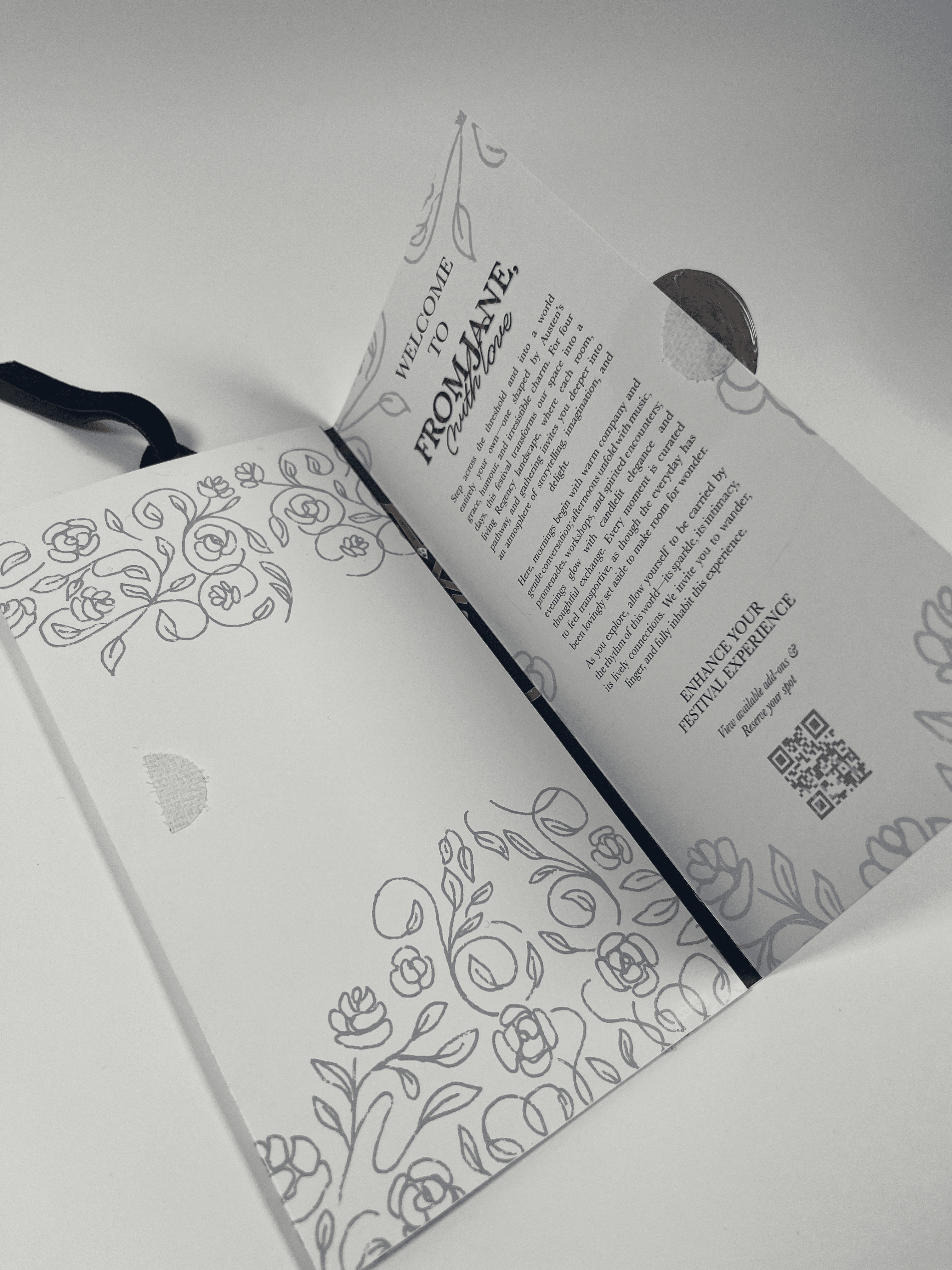 The envelope-style format, sealed with Jane Austen’s emblem, adds a sense of ceremony. A Velcro attachment makes the program easy to open and close, blending tactile charm with practical usability.