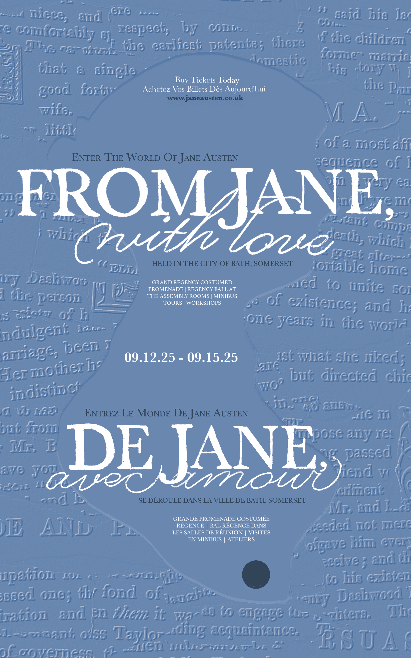 This poster was designed to promote a Jane Austen–themed festival and visually communicate its historical and literary focus. The concept centers on creating an immersive, period-inspired experience that reflects both the Regency era and the lasting influence of Jane Austen’s work.