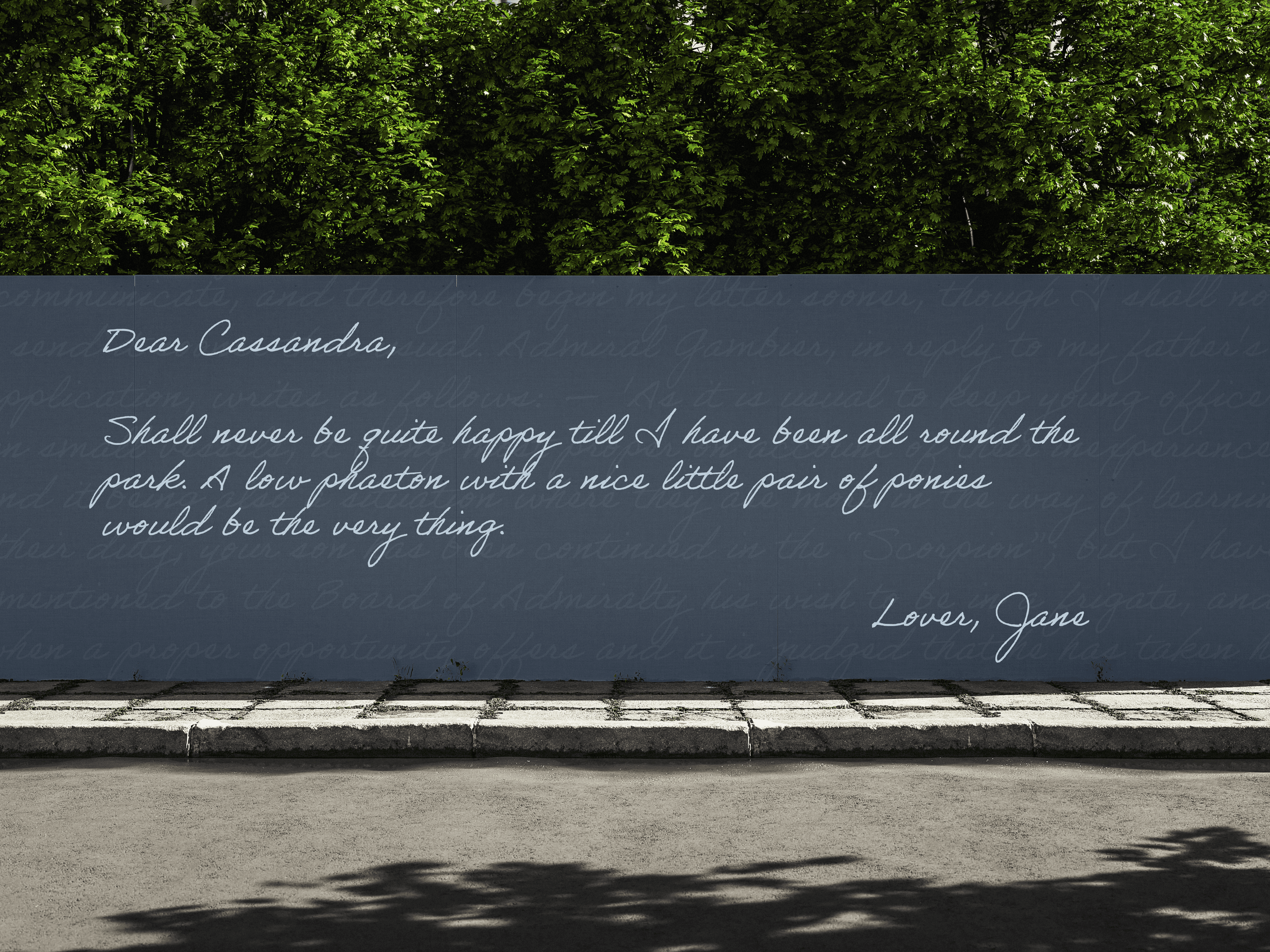 This design draws directly on Jane Austen’s practice of writing letters and explores emotions that were often left unspoken in her social world.